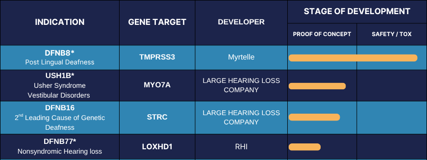 Developing Gene Therapies for the Hearing Loss Population – Rescue Hearing’s Gene Therapy Pipeline focuses on addressing the root cause of genetic hearing loss. Our team of physicians, scientists, researchers, and business advisors are utilizing advanced medical technologies and drug development expertise to provide therapeutic options for those with hearing loss.